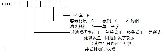 示例:HLFB-4ⅡS表示内置4只滤袋,壳体不锈钢材质的袋式精细过滤器。